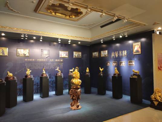 中国金箔艺术馆占地4000多平方米,设有金箔生产工艺、金箔艺术品、古今中外金箔应用经典等8个展区,共展出金箔艺术精品3000多件。