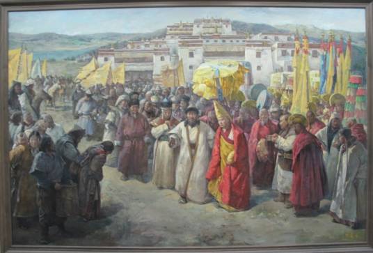 公元16世纪,蒙古俺答汗雄长于草原,他以土默特为基地,东面逼迫察哈尔的蒙古大汗库登汗(打来孙)东迁于辽河套,西面驱逐瓦剌,开拓漠北,南面屡次侵扰明朝边疆,一度包围北京,造成庚戌之变。此外,俺答还积极向青海进军,驱逐了早先占据青海的卜儿孩等瓦剌贵族,并开始了与藏族(西番)的接触。当时青藏高原正处于教派纷争之中,信奉噶玛噶举派的藏巴汗势力强盛,压制格鲁派发展,因此格鲁派急欲对外寻求出路。恰在此时,蒙古俺答汗与明朝达成和议,受封为顺义王,并实现了梦寐以求的互市,解决了经济上的后顾之忧,开始谋求进一步扩张,同时也需要在蒙古内部巩固自己的权威,强化凝聚力,而导入藏传佛教正好迎合他的需求:一方面可以实现对青藏高原的控制,另一方面可以借此树立自己在蒙古内部的神圣权威,最终完成对蒙古各部的统一。于是,蒙古土默特部与藏传佛教格鲁派逐渐走到一起。