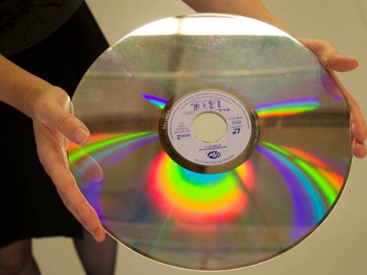 6.对于已变形的镭射影碟,可以进行人工矫正。其方法是将变形的碟片装入一纸套内,夹在两块平整的玻璃板之间,再将4至5公斤重的书籍平整地压在玻璃板上。24小时后碟片即可恢复正常。