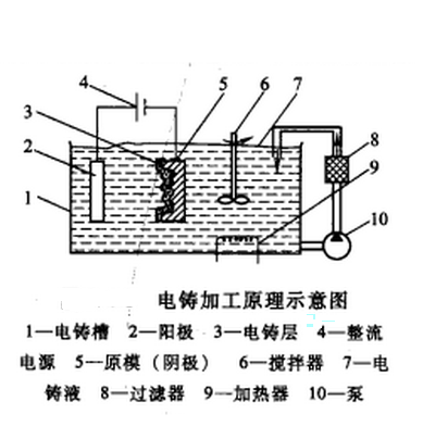 应用电铸技术,可将一般机械加工中较为困难的工件的内表面转化为芯模的外表面,也能把难以成型的金属材料转化为易成型的芯模材料(如蜡、树脂、塑料等)。
