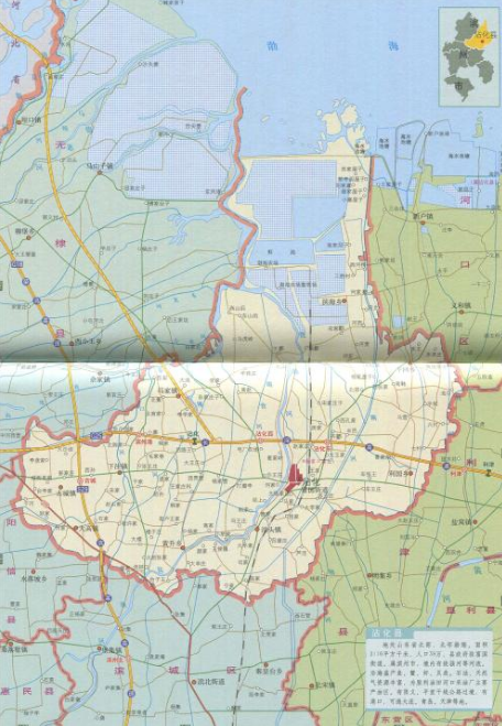 沾化区,隶属山东省滨州市。位于山东省北部,渤海湾南岸,黄河三角洲腹地,东部与河口区、利津县为邻,南连滨城区,西南部与阳信县接壤,西部与无棣县毗连,总面积2215平方公里。辖7镇2乡、2个街道、1个海防办事处,438个行政村。 根据第七次人口普查数据,截至2020年11月1日零时,沾化区常住人口为334948人。