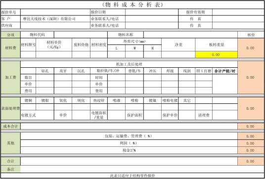 (3)物料采购金额巨大,成本分析有助于将来的议价工作。