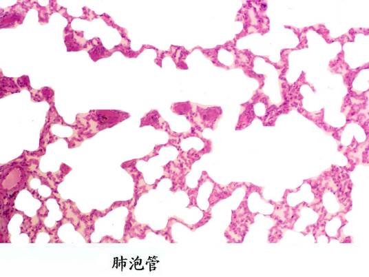 肺泡管:是人体肺呼吸系统的重要组成结构,它是指从肺泡囊到呼吸性细支气管的通道,也由肺泡围成。有小团状的平滑肌断面和单层扁平上皮。