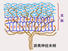 (free nerve ending)此种末梢广泛分布于表皮、角膜、浆膜、肌肉和结缔组织中,结构较简单。周围突在接近终末端处髓鞘消失,其裸露细支又反复分支,游离分散跨上皮细胞或结缔组织中,能感受疼痛和冷热的刺激。
