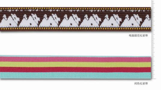 是在松紧带上印上不同的花纹和图案,配合不同的底带,产生不同的成果,变更万千,其中包括热转印花和丝印花。