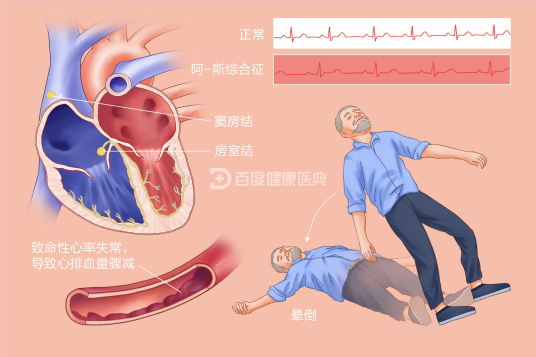 阿-斯综合征发病是由于严重的、致命性缓慢或者快速性心律失常,导致心排血量骤降,因而产生严重的脑缺血症状发作 。