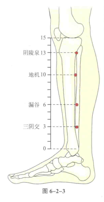 (1)三阴交。三阴,足三阴经也。交,交会也。该穴名意指足部的三条阴经中气血物质在本穴交会。本穴物质有脾经提供的湿热之气,有肝经提供的水湿风气,有肾经提供的寒冷之气,三条阴经气血交会于此,故名。