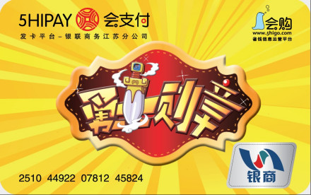 银联商务江苏分公司于2010年与南京会购信息科技有限责任公司达成战略合作协议,共同发行会支付、会省钱的支付卡。