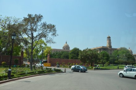 新德里的中心是建立在山丘之上的总统府。总统府建于1929年,原名维多利亚宫,印度独立后,改为总统府。总统府为宫殿式建筑,坐西向东,采用红砂石建造,半球形圆顶反映出莫卧儿王朝的遗风。
