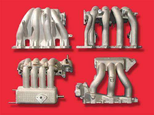 对于气道燃油喷射式发动机或柴油机,进气歧管只是将洁净的空气分配到各缸进气道。进气歧管必须将空气、 燃油混合气或洁净空气尽可能均匀地分配到各个气缸,为此进气歧管内气体流道的长度应尽可能相等。为了减小气体流动阻力,提高进气能力,进气歧管的内壁应该光滑。