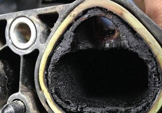 喷油嘴聚有积碳,极易卡死喷油嘴,造成发动机缺缸运行或突然熄火。