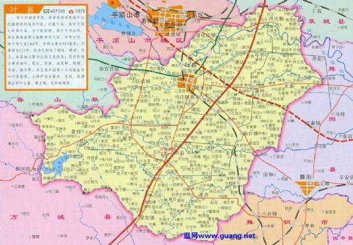 叶县,位于河南省西南部,平顶山市东南,伏牛山脉东麓。地处东经113°02′~113°37′,北纬33°21′~33°46′之间。东邻舞阳县、舞钢市,西连鲁山县,南界方城县,北与襄城县、平顶山市接壤。 总面积1387平方千米。