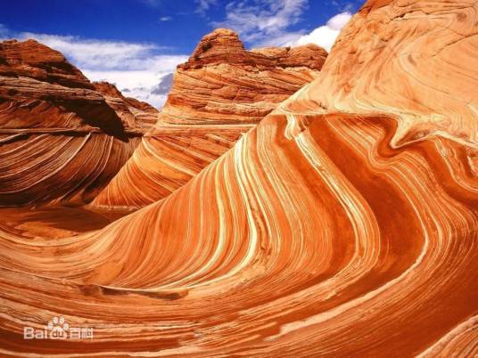 美国亚利桑那州和犹他州交界处的波纹状的岩石带,是一片经过19亿年地质作用,由沙丘演变成的岩石结构。如果前往需要徒步穿越4.8公里崎岖不平的山地,翻越高达350米的岩石地带。当你攀登过一座岩石顶部,会看到一组新的岩石波纹,颜色较前者更深,结构更为宏大。