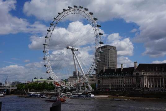 伦敦眼(The London Eye),全称英国航空伦敦眼,坐落在英国伦敦泰晤士河畔,是世界上首座、同时截至2005年最大的观景摩天轮,为伦敦的地标及出名旅游观光点之一。伦敦眼于1999年年底开幕,当时赞助商还是英国航空公司因此又称千禧之轮,总高度135米(443英尺)。伦敦眼共有32个乘坐舱(由序号1排列到33。因为宗教忌讳,无13号),因舱内外用钢化玻璃打造,所以设有空调系统。每个乘坐舱可载客约25名,回转速度约为每秒0.26米,即一圈需时30分钟。“伦敦眼”为庆祝新千年而建造,因此又称"千禧摩天轮"。乘客可以乘坐"伦敦眼"升上半空,鸟瞰伦敦。“伦敦眼”在夜间则化成了一个巨大的蓝色光环,大大增添了泰晤士河的梦幻气质。伦敦眼还为2015英国大选亮灯,红灯代表英国工党,蓝色代表保守党,紫色代表英国独立党,黄色代表自由民主党。
