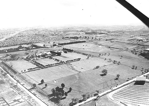 新大学该建在何处是一个备受争议的话题。有人建议选在皇家公园和考菲尔德赛马场。最终,选址在大都市边缘的克莱顿,占地 250 英亩。这里有足够的发展空间,但没有铁路线。建筑师 Osborn McCutcheon 设想将时尚实用的建筑矗立在公园般的环境中。大学的快速发展迅速改变了这些计划,计划中的湖泊、许多学生宿舍和医院被废弃,为大量停车场让路。首席建筑师 Robin Boyd 警告说:“维多利亚的第二所大学绝不能是二流的。我们拥有难得的绝好机会,能够重新开始,避免我们的曾祖父在第一所大学中犯下的最初错误。”