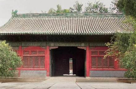 街门 街门原为南房,面阔五间,民国时期中间三间改为街门,硬山顶调大脊,简瓦屋面。明间及次间均安装红漆板门两扇,大门内外铺设礓礤坡道 。 |