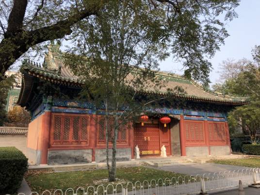 配殿位于二进院东西两侧,面阔三间,硬山顶,覆灰色简瓦,绿琉璃瓦剪边 。