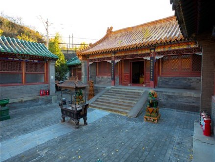 琉璃渠村关帝庙和过街楼遥遥相对,在琉璃渠村的西口,紧邻古道,俗称老爷庙。关帝庙建于明代,是一座完整的四合院,坐西朝东,有正殿三间,硬山大脊,琉璃瓦顶,排山勾滴,垂脊有小兽,前出廊,双层檐椽,梁枋上绘旋子彩画。正殿前有垂带八级踏步。大殿两侧耳房各一间,元宝顶,五级踏步。两厢配殿各三间,硬山元宝顶,五级踏步。
