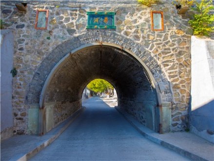 琉璃渠村过街楼在门头沟区永定河边琉璃渠村东口,俗称灯阁,亦称三官阁。清乾隆二十一年(1756年)创建,光绪年间(1875年—1908年)重修,为北京市级文物保护单位。