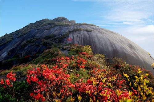 景区内的石蛋群地貌属全国罕见,4平方公里高山原生种群杜鹃花群落也是全省唯一。这里朝晖夕阴,气象万千,一年四季景色各异,春有山花浪漫,夏有林木苍翠,秋有冰凌雾松,冬有白雪皑皑,特别是负氧离子含量高达每立方厘米100000个,是个天然的大氧仓。这里乃城市之郊,尘世之外,离凡尘最远。