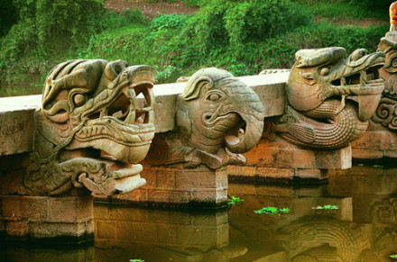 永济桥位于泸县云龙镇战旗村,建造于清康熙五年(1666年),乾隆四十三年(1778年)重建,12墩13孔石质平板梁桥,呈东北一西南走向。桥长59米,宽2.5米,高4米,桥板厚0.6米,由东北向西南第四、六、七、九个桥墩上各有圆雕龙,龙首张口露牙、舌,上唇上翘,凸目、凸鼻;龙尾呈平面浅浮雕卷曲状。其雕刻手法细腻,线条流畅,造型精美圆润,是泸县龙桥中温婉祥和、柔美圆润风格的代表。2013年3月,被国务院公布为第七批全国重点文物保护单位。奇峰渡槽