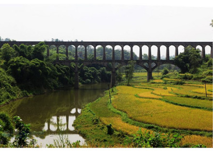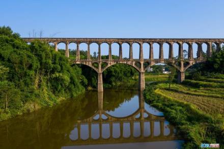 奇峰渡槽位于四川省泸州市泸县奇峰镇境内,由胜利渡槽和华丰渡槽构成,奇峰渡槽由胜利渡槽和华丰渡槽构成,是西南地区乃至中国丘陵地区典型的桥梁式渡槽。修建目的是解决当地丘陵地区连年干旱缺水,田土缺收短收的问题。胜利渡槽1975年完工,因其独特的桥上桥设计驰名,下层流通龙溪河水,中层为行人过桥,上层为引水槽体,总长1000米,21墩20孔,最高处33米;华丰渡槽1978年建成,全长1122米,共用47个大拱跨,76个小拱跨,桥墩上还有小卷拱,最高跨拱高为39米,最高处43米,是泸县跨距最大、拱跨最多、跨拱最高的一座水渠渡槽。2019年,被列为全国重点文物保护单位。泸县晚熟龙眼