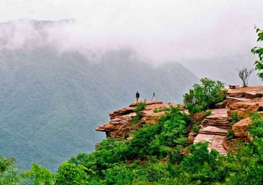 这个诗人叫莫麟,浙江人,明朝嘉靖年间曾在这里担任一个小官。这个古城叫萧城。这座山就是三仙台。