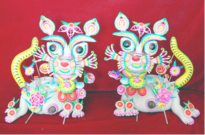 | 面花 面花,是用小麦面粉为材料捏制成的民间艺术品,也叫“礼馍”“花馒头”“贡儿”。每逢春节、端午节、中秋节在各家各户神案上供奉灶神、福禄寿三星、钟馗和月宫娘娘,还要在影族、坟墓前敬奉祖先,在棺椁前的供桌上追奉新逝亡灵,在婚礼的天地桌上诚奉天地神等。在许多地区,人的一生都与面花结缘。在黄陵县,孩子过满月、成丁礼,外婆都要送来精制的大花虎馍,希望孩子一生能够受到虎的保佑,能像虎一样虎虎有生气,身体结实强壮。黄陵面花于2008年2月被国务院批准列入“第二批非物质文化遗产保护名录”。 |