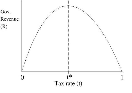 “拉弗曲线”理论是由“供给学派”代表人物、美国南加利福尼亚商学研究生院教授阿瑟·拉弗提出的。该理论之所以被称之为“供给学派”是因为它主张以大幅度减税来刺激供给从而刺激经济活动。“拉弗曲线”的基本含义是,税收并不是随着税率的增高在增高,当税率高过一定点后,税收的总额不仅不会增加,反而还会下降。因为决定税收的因素,不仅要看税率的高低,还要看课税的基础即经济主体收入的大小。过高的税率会削弱经济主体的经济活动积极性,因为税率过高企业只有微利甚至无利,企业便会心灰意冷,纷纷缩减生产,使企业收入降低,从而削减了课税的基础,使税源萎缩,最终导致税收总额的减少。当税收达到100%时,就会造成无人愿意投资和工作,政府税收也将降为零。