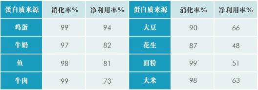 按一般方法烹调时,常用食物蛋白质的消化率分别为:奶类:97%~98%、肉类92%~94%、蛋类98%、米饭82%、面包79%、马铃薯74%、玉米面窝头66%。