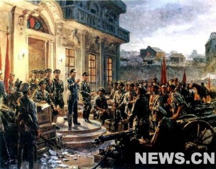各地相继举行武装起义,实行工农武装割据中国共产党人从大革命失败的惨痛教训中,逐步认识到独立领导武装斗争和组织革命军队的极端重要性。1927年8月1日,以周恩来为书记的中共前敌委员会和贺龙、叶挺、朱德、刘伯承领导由共产党掌握和影响的国民革命军(北伐军)2万多人在南昌举行起义,打响了武装反抗国民党反动派的第一枪。8月7日,中共中央在汉口召开紧急会议,正式确定实行土地革命和武装起义的方针,号召全党和广大工农群众奋起反击中华人民共和国国民党反动派的进攻。9月11日,中共中央特派员、中共湖南省委前敌委员会书记毛泽东等领导由农民自卫军、工人纠察队和革命士兵组成的工农革命军第1军第1师,在湖南、江西两省边界地区举行秋收起义。12月11日,中共广东省委书记张太雷和叶挺、黄平、周文雍、叶剑英等领导工人赤卫队和革命士兵在广州举行起义。到1928年6月,中国共产党在全国范围内领导了200余次武装起义,其中规模较大的有洪湖地区,海丰、陆丰地区,黄安、麻城地区,弋阳、横峰地区等农民起义,以及湘南、桑植、渭华等起义。此后,还领导了平江起义、百色起义、龙州起义和其他起义。从这些起义中,中国共产党领导创建了若干支革命武装。1928年5月以后,这些革命武装陆续称红军。 在国民党军占有绝对优势和革命处在低潮的情况下,为了保存和发展自己,毛泽东率领秋收起义部队于1927年10月转战到江西省以宁冈为中心的井冈山地区发动群众,开展游击战争,打土豪、分田地,废除封建土地制度,建立共产党的地方组织和工农民主政权(即苏维埃政府)以及地方武装,实行工农武装割据。到1928年2月,初步建立了中国第一个农村革命根据地——井冈山革命根据地。4月,朱德、陈毅率领南昌起义军余部和湘南农军到达井冈山,同毛泽东部会师,合编为工农革命军第4军(后称红军第四军),巩固和发展了井冈山革命根据地。其他地区的起义武装,有的也先后转移到中华人民共和国国民党统治力量薄弱、群众基础较好、地势有利的地区,开展游击战争,实行工农武装割据。