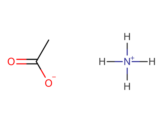 乙酸铵(ammonium acetate),又称醋酸铵,是一种有机化合物,结构简式为CH3COONH4,分子量为77.082,是一种有乙酸气味的白色晶体,可作为分析试剂和肉类防腐剂。其具有吸水性,易潮解,因此乙酸铵需要干燥保存,取用时应在干燥的环境中进行。