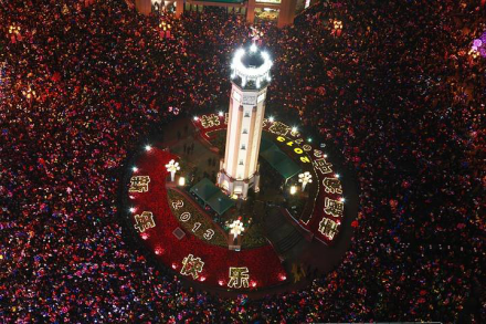 2015年1月1日,解放碑举行新年敲钟活动,迎接新年 。