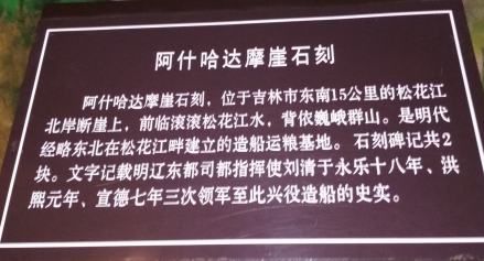 阿什哈达摩崖是吉林省内已发现的唯一明代石刻,它是研究明朝在吉林驻防造船、明代经略东北和明代东北疆域以及政治、经济、军事的重要历史遗迹。