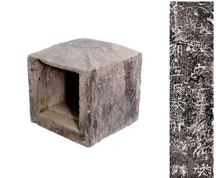 塔基东南部,放有两个唐代石棺,一个带盖,一个敞口;一具刻有花纹和飞天像,一具刻有铭文:“唐定州静志寺于龙纪元年(889年)岁在己酉四月,因修盖佛龛,掘得石函一个,内有金棺银椁,灿烂生辉,缁素同开,乃获舍利,或隐或显,或离或合,遂取那僧令钧、上坐僧匡鉴、寺主僧元志”。两棺内放有大量玉料及铜器。
