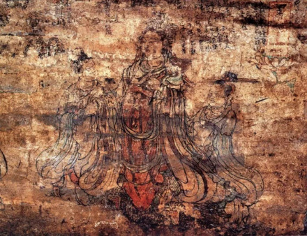 塔基内四壁均有壁画。券门两侧南壁上各画天王像一幅,画中天王全身戎装,西侧右手持剑,东侧右手持剑、左手托塔,凶盾怒眼,足下踏有夜叉,形象狰狞。东西两壁画的是礼佛图,东为梵王,西为帝释,梵王作帝王形像,帝释作贵妇人形象,两旁各有二童,二侍女,是当时上层封建统治阶级人物生活的写真。东壁为梵王作帝王形象;画中的梵王阔面大耳络腮胡,头戴珍珠冠,目视前方,表情凝重。身着绿色广袖袍,内衬白罗中单,披绿帔帛,胸前结红带,大腹便便,由二侍女搀扶而行,前有一侍女捧莲花引路。在人物身后有一朵盛开的莲花,莲花上托起一长方形盘,上写“范王……”。西壁上的帝释雍容华贵,端庄祥和。头戴花冠,耳缀花钿。上身穿广袖衫襦,内衬白罗中单,下著绛纱长裙,腰系长带,足登翘头丝履,绿色帔帛飘绕身前。帝释面如银盆,体态丰腴,左手拿拂尘,由二侍女随从左右,前有一侍女捧桃引路。墙壁上前方写有“太平兴国二年(977年)……”的题款,人物后面有莲花托起的木盘,上写“帝释……”。正面北壁的壁画,中间为一莲花座,上托一灵牌,牌上写“释迦牟尼真身舍利”八字,两侧各有五个僧人像,神态严肃悲戚,画面寒风飒飒,黄叶飘零,更增加了悲凉的气氛。从画的内容看,这幅画描述的是释迦牟尼的尸体火化以后,他的十个弟子去安葬礼拜的情形。在四壁上,写满了施舍人的姓名和施舍的器物名称,并记有年月。