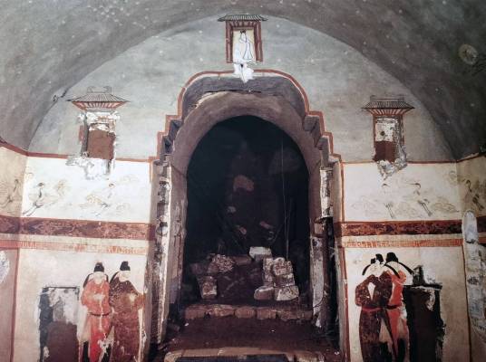 王处直其人在《旧唐书》《旧五代史》均有传,生前官拜义武军节度使,节制易、定、祁三州,为河北地区的重要藩镇将领。后养子王都发动兵变,王处直被软禁,忧愤而死。王都夺权后,为了脸面和名声,他请来了最好的工匠为其养父修建陵墓,进行厚葬。