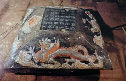 志盖四坡面雕出了四兽:青龙、白虎、朱雀、玄武(龟)。