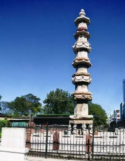1976年7月28日,唐山大地震时,大佛顶尊胜陀罗尼经幢顶坠地,幢身东南斜。