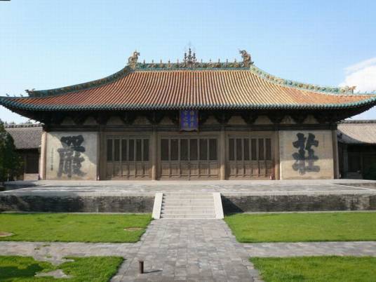 浑源永安寺,坐北朝南,沿中轴线依次为山门、天王殿和传法正宗殿,两侧东西配殿有观音殿、伽蓝殿、达摩殿、雷神殿及关帝殿。