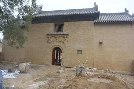 山门由两部分组成,下为入庙山门,上为倒座戏台,台上有屏风,屏风上题“云梯、月宫” 。