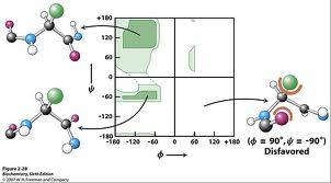 对于一个三肽来说,当中心肽基处在所有φ角和ψ角值时计算非键合原子间的允许距离,把得到的信息绘制成的图叫构象图或Ramachandran图简称拉氏图