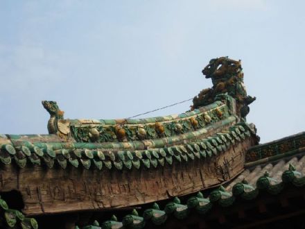 正殿殿顶正脊、垂脊均采用浮雕莲花琉璃脊筒,大部分琉璃为明代遗物,正吻、垂吻、戗吻均完好。