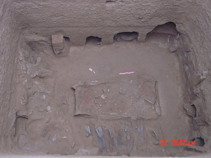 小型墓:墓坑小而狭长,一般长2米,宽0.5米左右。大多没有木质葬具和随葬品。这类墓约占墓葬总数的90%。