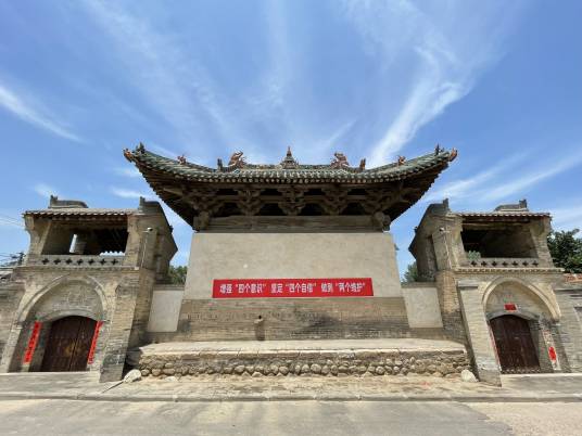 山门设于戏台两侧,分上下两层,下层为砖券门洞,上层分别是钟楼、鼓楼,面阔一间,进深二椽,单檐灰筒板瓦卷棚顶 。