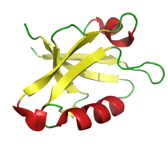 PDZ结构域,或者叫做“盘状同源区域”,是一种由80到100个氨基酸残基组成的保守序列,最初的名称是“突触后密度蛋白”PSD-95,或者DLG4(是“膜相关性鸟苷酸激酶”蛋白家族的一种)。在真核生物中,PDZ结构域通常表现为串联重复拷贝。由80到90个氨基酸残基组成,包含两个α螺旋和六个β折叠。生物作用主要是介导膜上的蛋白聚集,结合目标蛋白的C端,目标蛋白结合在由PDZ结构域第一个α螺旋和第二个β折叠所构成的沟内。
