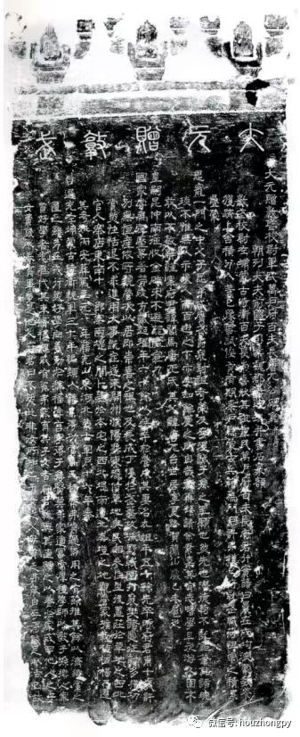 唐兀公碑碑身高1.77米,近正方形立柱,边长0.68米。四周雕刻基本一样。正面上部左右两侧浮雕8厘米宽的柱头,柱间普柏坊(额枋)高66厘米,中间线刻卷云纹图案。柱两侧为雀替,南面和北面雀替为线雕牡丹图案,东面雀替为线刻球纹格眼图案。西面线刻似为波浪纹,还刻有葵花盘。柱上托阑额(平板枋)厚35厘米,线刻窃曲纹图案,阑额上浮雕柱头铺作二垛、补间铺作垛,皆一斗二升交蚂蚱头。大斗高9.5厘米,口宽11厘米,小斗高5.5厘米,口宽6厘米,材宽6厘米,高约6米,契高3.5厘米。拱眼壁都线刻有变形菊花图案,而北面花卉又似插在瓶内,画面露出瓶嘴。斗拱上托挑檐檩,向上承托顶构架。四面的普柏坊(立枋)厚3厘米:上面的刻画两柱间部分也基本相似,柱外部分有差异。