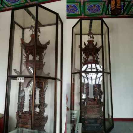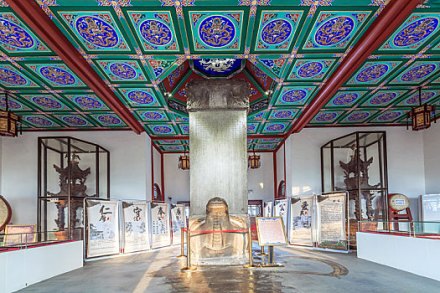龙凤亭 龙凤亭位于南京鼓楼上层城楼内,戒碑两侧各一只,为一对,暂无确切年代可考。为六角七级二层木结构,通高4米,外观呈塔形,外镀金箔,各级细雕人物、植物或动物。从下至上,四级为人物,为武士出征,三国故事人物等;三级为花鸟,有葵花、天竹、青松、芭蕉、万年青等;二层为六大骑士。六根亭支架上,均为凤在上方,龙在下方 。 |