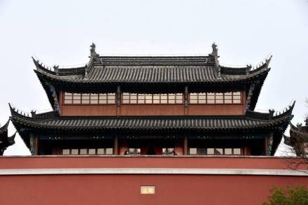 | 城楼 城楼为南京鼓楼上层建筑,始建于明洪武十五年(1382年),为歇山檐棚顶梯亭,与台座等大,分为中殿与东西两殿,滴水直落台座之外,内设大鼓2面、小鼓24面、云板1面、牙杖4根、点钟1只、铜壶滴漏1架、三眼画角24板,现已无存。明末清初时期城楼坍塌,清康熙二十四年(1685年)重建为碑楼,内置清康熙二十四年(1685年)两江总督王新命等人所立戒碑一通。太平天国时期城楼再次被毁,清同治年间重修为重檐歇山式二层建筑,面阔13.77米,进深10.67米,高约14.5米,廊宽1.5米,周围柱础回廊有24根廊柱,附有雕花梁托,透雕风凰、麒麟、云鹤等形象 。 |