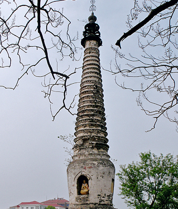 明洪武二十二年(1389年),在土塔外加建砖石,修建为圆形锥体实心砖石塔。
